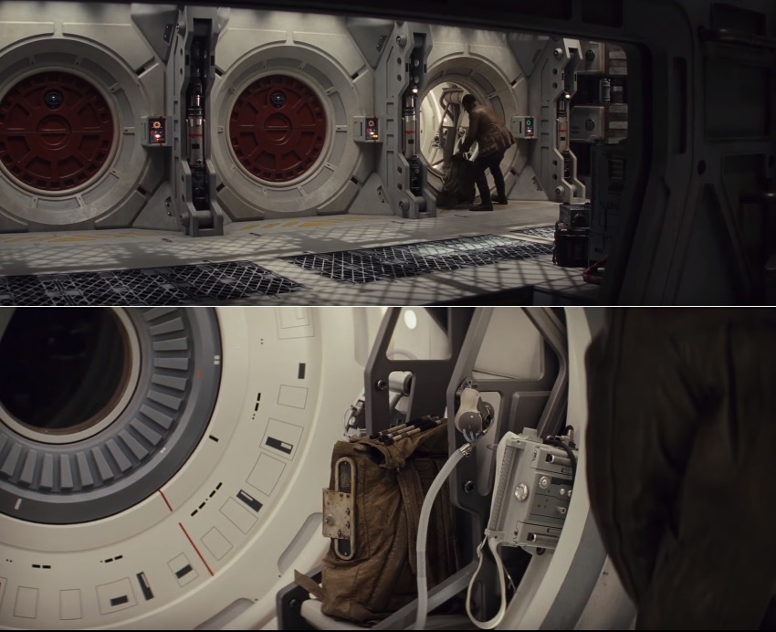 W scenie, gdy Finn i Rose nawiązują znajomość (zrażając przy tym tysiące widzów), chłopak ma zamiar uciec w kapsule ratunkowej. Zanim usłyszy wołanie Rose, kładzie swój bagaż przed wejściem do kabiny. Co dziwne, chwilę później kamera pokazuje plecak już w środku, w dodatku nie rzucony byle jak, ale pieczołowicie ułożony. Z jednej strony można pomyśleć, że w montażu zapodział się moment wkładania bagażu do pojazdu, z drugiej – zawsze można to wytłumaczyć wszędobylską obecnością Mocy, która sama włożyła plecak do kapsuły.
