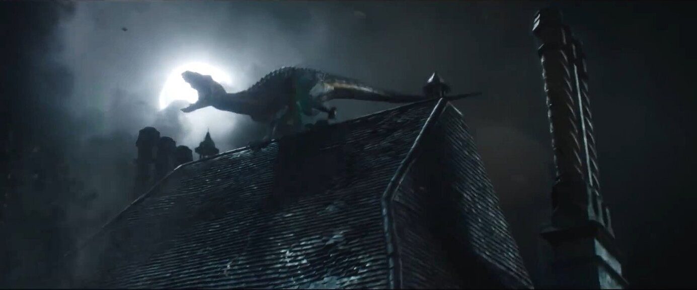 Cała sekwencja otwierająca Upadłe królestwo to wyjątkowo udany miks nastrojowej grozy, nostalgicznych odwołań i pełnej napięcia akcji. Moment, w którym blask błyskawicy na ułamek sekundy oświetla tyranozaura czającego się między drzewami, od razu wypalił się w mojej wyobraźni, a scena ucieczki bezimiennego nieszczęśnika to istna jazda bez trzymanki.