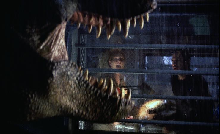 Kolejna kultowa sekwencja – welociraptory buszujące w kuchni w poszukiwaniu zdobyczy to jeden z najbardziej rozpoznawalnych motywów serii. Świetne połączenie CGI z animatroniką, groza, którą budzą raptory (konsekwentnie budowana przez cały film), i bezbronność bohaterów składają się na wyjątkowość całości. Kto oglądał Park Jurajski i nie pamięta raptora stukającego pazurem o podłogę? I wreszcie: kto nie ma ochoty bić brawa, kiedy tyranozaur w ostatniej chwili ratuje bohaterów przed okropną śmiercią? Triumfalne ryki tyranozaurów zawsze robią wrażenie.