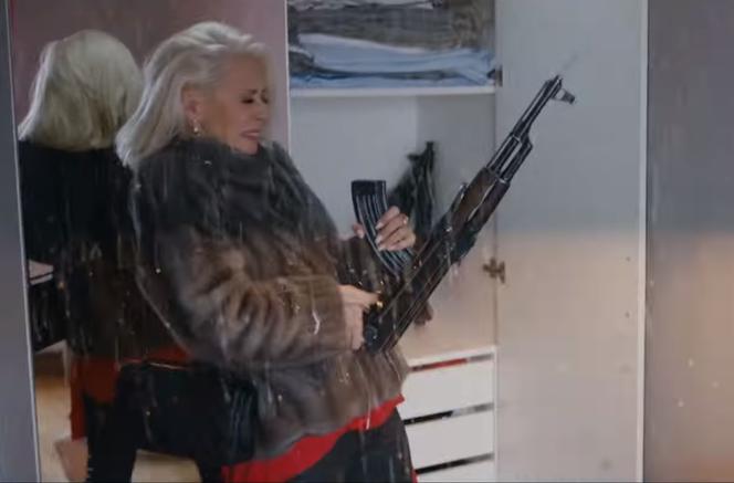 19. Żony gangsterów zatrzymuje się na środku drogi. Zatrzymania dokonuje kilkunastu policjantów, którzy kilkoma radiowozami zajeżdżają kobiecie drogę. Potem wywlekają ją z auta i rzucają na glebę.