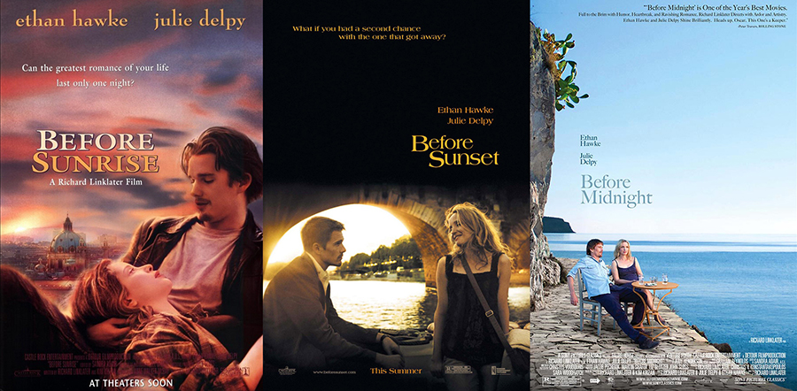 Trzy filmy i historia rozłożona na przestrzeni osiemnastu lat. Jesse i Celine poznają się w pociągu sunącym po Europie, wysiadają w Wiedniu i rozpoczynają długi spacer spędzony na ciągłej rozmowie. Ten prosty koncept Richard Linklater realizuje z rzadko spotykaną dozą wrażliwości i mądrości, natomiast hasła wygłaszane przez głównych bohaterów niejednokrotnie uderzają swoją przyziemnością. Nie ma tu miejsca na patetyczne frazesy i moralizatorskie hasła. To zderzenie i wymiana dwóch zbiorów doświadczeń, nie zawsze przyjemnych. W połączeniu z naturalnym aktorstwem Julie Delpy i Ethana Hawke’a daje to efekt niemalże bezpośredniego uczestniczenia w tych wszystkich konwersacjach – tak, jakbyśmy towarzyszyli bohaterom na ulicach kolejno Wiednia, Paryża i greckiej wyspy.