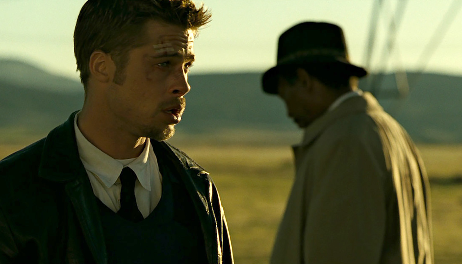 Warto nieco pochylić się nad sposobem filmowania obydwu policjantów. Somerset częściej pozostaje w cieniu, nieco na drugim planie. Jest w nim coś z koryfeusza udramatyzowanych losów Millsa, jednak nie jest w stanie mu pomóc. Trzeba przyznać, że to jedna z ciekawszych ról w karierze Morgana Freemana, chociaż jak zwykle w cieniu. Gdyby faktycznie Somerset był szarą eminencją filmu, pewnie bym go nie wybrał do tego zestawienia, jednak cień Somerseta jest zbyt nieobecny, niewpływowy. Mills i tak postąpi zgodnie z przeznaczeniem, a jego partner nie stanie się dla niego instrumentem ratunku.