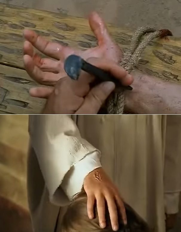 Dwuczęściowy film telewizyjny oparty na czterech Ewangeliach skupia się na ludzkim aspekcie postaci Jezusa, stawiając go często w luźnych, przyziemnych sytuacjach typu tańce na weselu. Oglądamy życie, śmierć i zmartwychwstanie Chrystusa – tego ostatniego tyczy się omawiana wpadka. Podczas ukrzyżowania gwoździe wbijane są w nadgarstki Jezusa (swoją drogą, z jakiegoś powodu w tej wersji krzyżuje go przypadkowy Żyd, a nie Rzymianin).