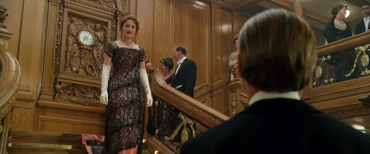 Można wskazać przynajmniej dwa spotkania Rose oraz Jacka na schodach. Najpierw to dziewczyna znajduje się na ich szczycie i, schodząc po stopniach, zbliża się do stojącego u dołu odzianego w smoking chłopaka. Do drugiego spotkania dochodzi w scenie, która doczekała się wielu interpretacji. Dla jednych jest snem Rose, inni postrzegają ją jako obraz życia pośmiertnego. Wówczas wcielająca się w postać Kate Winslet ponownie przechadza się po statku, mijając po drodze szereg znanych jej twarzy: członków załogi Titanica czy innych pasażerów. Na schodach wreszcie trafia na Jacka i ponownie ich ciała łączą się ze sobą. Schody w dziele Jamesa Camerona to wobec tego miejsce dla kochanków wyjątkowe. Stanowią symboliczne, ale i dosłowne, podłoże, na którym Rose i Jack stają się jednością, dowodząc swojej wielkiej miłości.