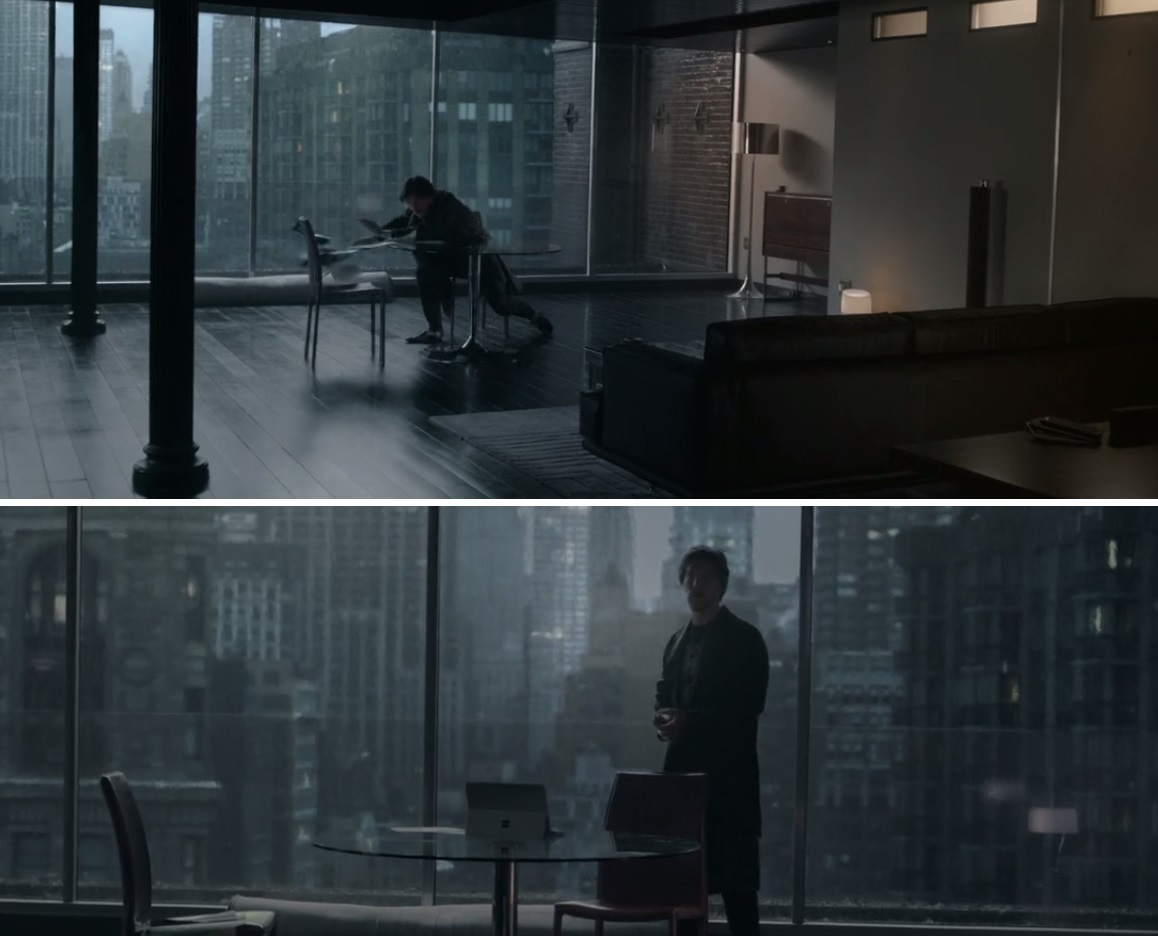Scena z pierwszego aktu filmu, gdy Stephen Strange desperacko próbuje znaleźć sposób na przywrócenie sprawności swoim dłoniom po fatalnym wypadku samochodowym. Frustracja związana z niepowodzeniami osiąga apogeum, kiedy pomocy odmawia mu kolejny specjalista, z którym to akurat łączy się za pomocą rozmowy wideo.