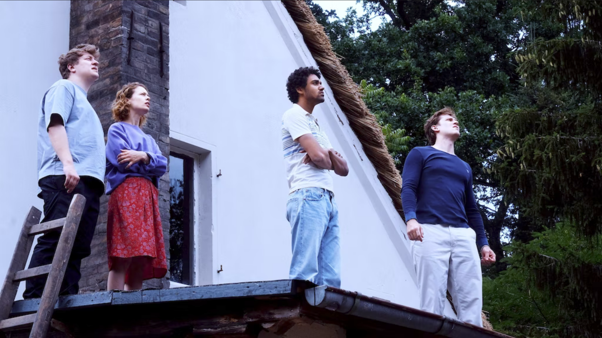 Wychodzę już ku interpretacji, ale trzeba najpierw zarysować, co Petzold proponuje w Afire fabularnie. Film rozpoczynamy z Leonem i Felixem, dwójką przyjaciół jadących do domku letniskowego na Pomorzu Przednim. Pierwszy z nich jest pisarzem i ma skończyć w spokoju książkę, drugi, do którego rodziny należy dom, przygotować portfolio do szkoły artystycznej. Od początku nie idzie im zbyt pomyślnie – po drodze psuje się samochód, przez co muszą pokonać kilkanaście kilometrów pieszo, a na miejscu okazuje się, że w domku mieszka już Nadja, daleka krewna Felixa. W konsekwencji kolejnych trudności i burzącej spokój obecności dziewczyny narasta frustracja Leona, a jego równowagę zaburza dodatkowo pojawienie się w grupie ratownika Deivida. Równocześnie nasilają się doniesienia o pożarach lasów, budując poczucie zbliżającego się, choć jeszcze niewidocznego zagrożenia narastającego wokół bohaterów i ich sielskiej nadmorskiej ostoi.