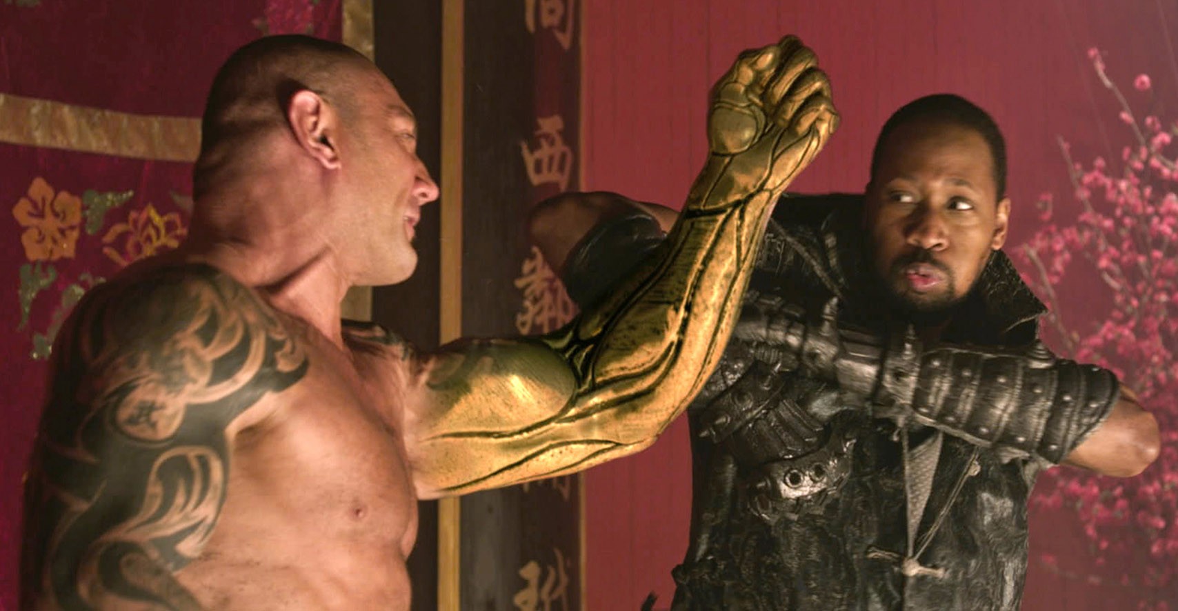 Jak widać galeria postaci wydaje się szalenie interesująca, niestety, RZA popełnił jeden podstawowy błąd przy obsadzaniu ról, wybierając siebie jako odtwórcę Kowala. W roli zahartowanego niczym wyrabiana przez niego samego stal rzemieślnika prezentuje się zbyt wymoczkowato, a wysoki wzrost i smukła sylwetka nie pomagają mu w odpowiednim budowaniu protagonisty. W zestawieniu z Davem Bautistą (wspomniany metaliczny jegomość), RZA po prostu niknie w oczach… Duży plus należy się za to Russellowi Crowe, który z odpowiednim dystansem wciela się w i tak mocno odszczepionego hulakę Jacka. Nie wylewający za kołnierz Amerykanin to ciekawa postać, z miejsca budząca sympatię widza, zaś jego specyficzny oręż dodaje mu zadziorności i animuszu.