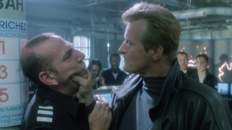 Poważnie, Holender, który miał tylko kilka tygodni wolnego czasu na nakręcenie Split Second / W mgnieniu oka (preprodukcja trwała zaledwie dwadzieścia dni), a do tego miał być podobno bardzo trudny we współpracy, odwala taki cyrk, że zastanawiam się, czy reżyser nie zostawiał po prostu włączonej kamery rejestrującej poczynania Hauera na planie, który ma tutaj wyjebongo na wszystko i wszystkich. Rutger wygląda, jak gdyby przed każdą sceną zjarał naprawdę tłustego jointa, cały czas jedzie na jałowym biegu (co nie zmienia faktu, że aktorsko nadal klasa) i jego zblazowanie w filmie sięga absolutnego zenitu.